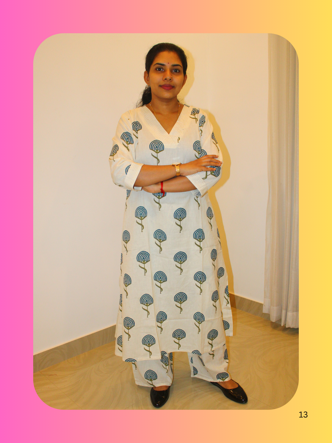 - Showcase timeless elegance with this beautifully crafted white kurta set featuring blue floral prints — perfect for festive, casual, and semi-formal occasions.